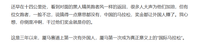 回去搜了一下我2023年厦门马拉松的赛记,有一段如下: 那时候,中国人刚从三年封锁中解放出来,百废待兴,虽然人们的信心经受了打击,但大多数仍然将疑将信着中国要再一次好起来了。我还记得我当时听到那位跑友的话,冷哼了一声,心里觉得这逻辑真够蠢的。从没想到,过去的两三年间,在我觉得傻逼到不可能成气候的状况下,这个逻辑却…