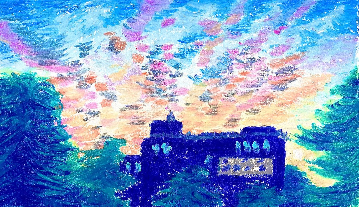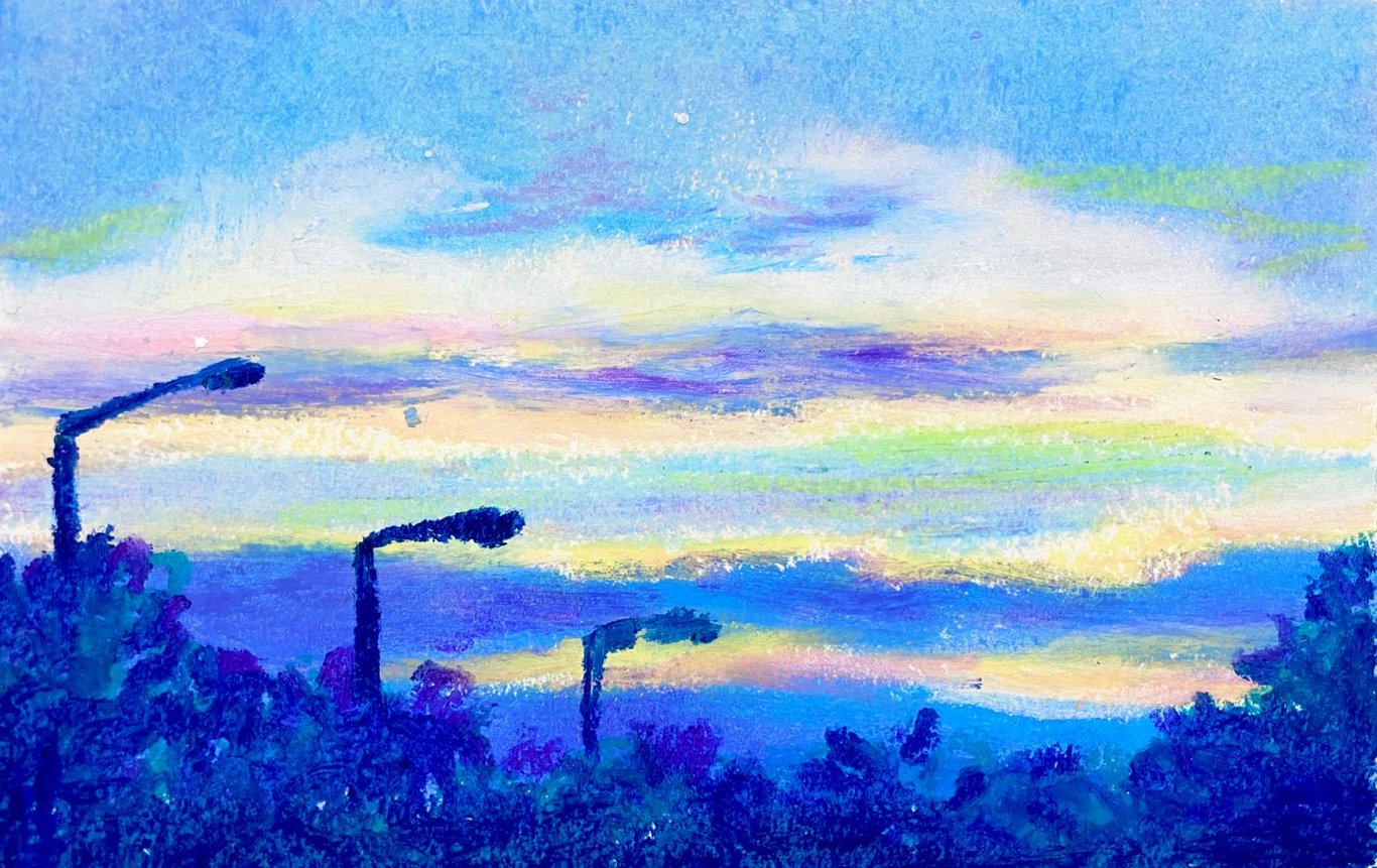 她嬌羞似的,躲在層層雲層中,透出耀眼的光芒;整片天空,彷彿為了她換上美麗的彩衣🥰