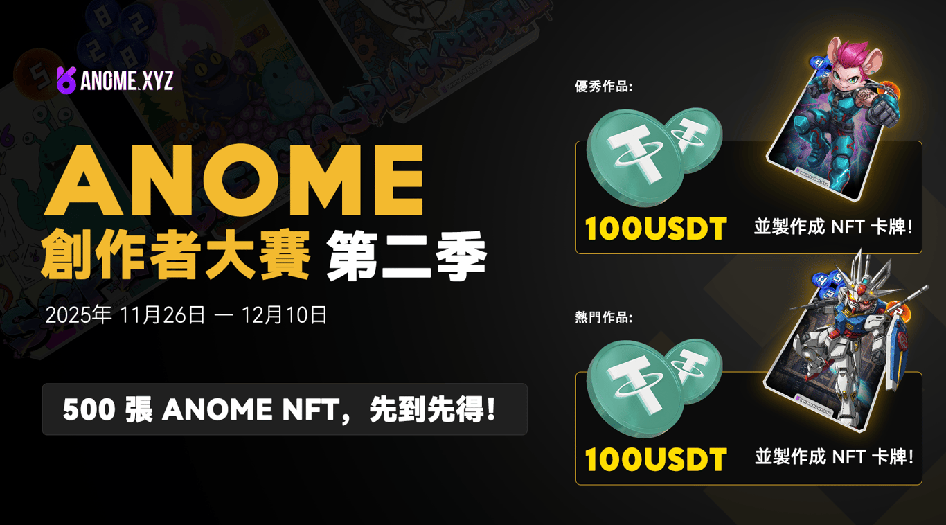 2025年11月25日 —— Web3 生态创新平台 ANOME 今日正式宣布推出 《ANOME 创作者大赛 第二季》。本季活动全面升级参赛方式、奖励规模与生态权益,旨在进一步激发社区创作能量,推动 UGC(用户生成内容)在 ANOME 生态中的深度应用。 创作形式全面升级:从 Meme 到短视频、动画与卡牌设计 继第一季活动获得社群积极反馈后,第二季活动在创作形式上全面扩展。参与者可自…