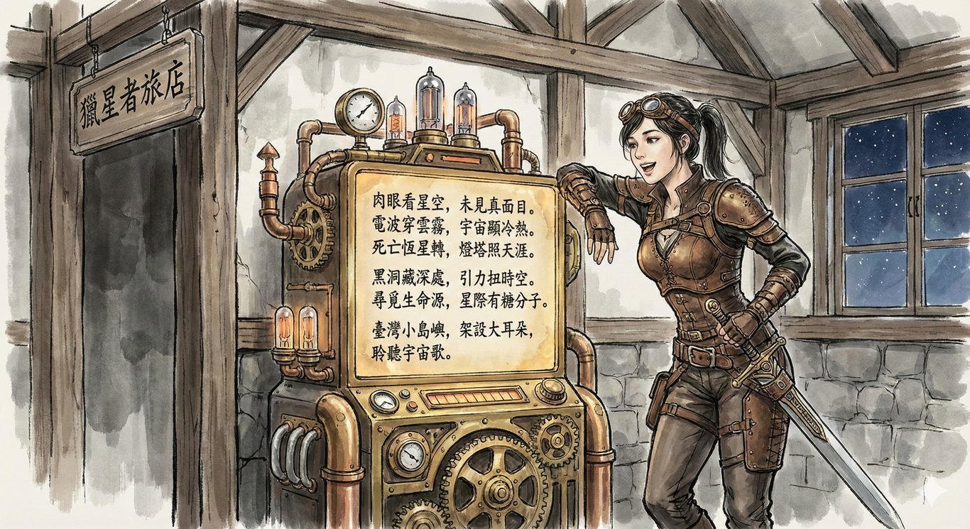 我在這篇文章中,分享如何藉由程式編輯器Windsurf的AI助手,不用自己寫程式,也能製作出一個蒸汽龐克風格的歌詞網站,以有趣的方式讓人認識蓋亞太空望遠鏡的觀測任務。你們對哪些天文主題感到好奇呢?想要將它們連結到哪些學科領域呢?數學?文學?物理學?社會學?生物學?程式開發?遊戲製作?外語學習?…歡迎在「與AI探索天文」FB粉絲專頁或我…