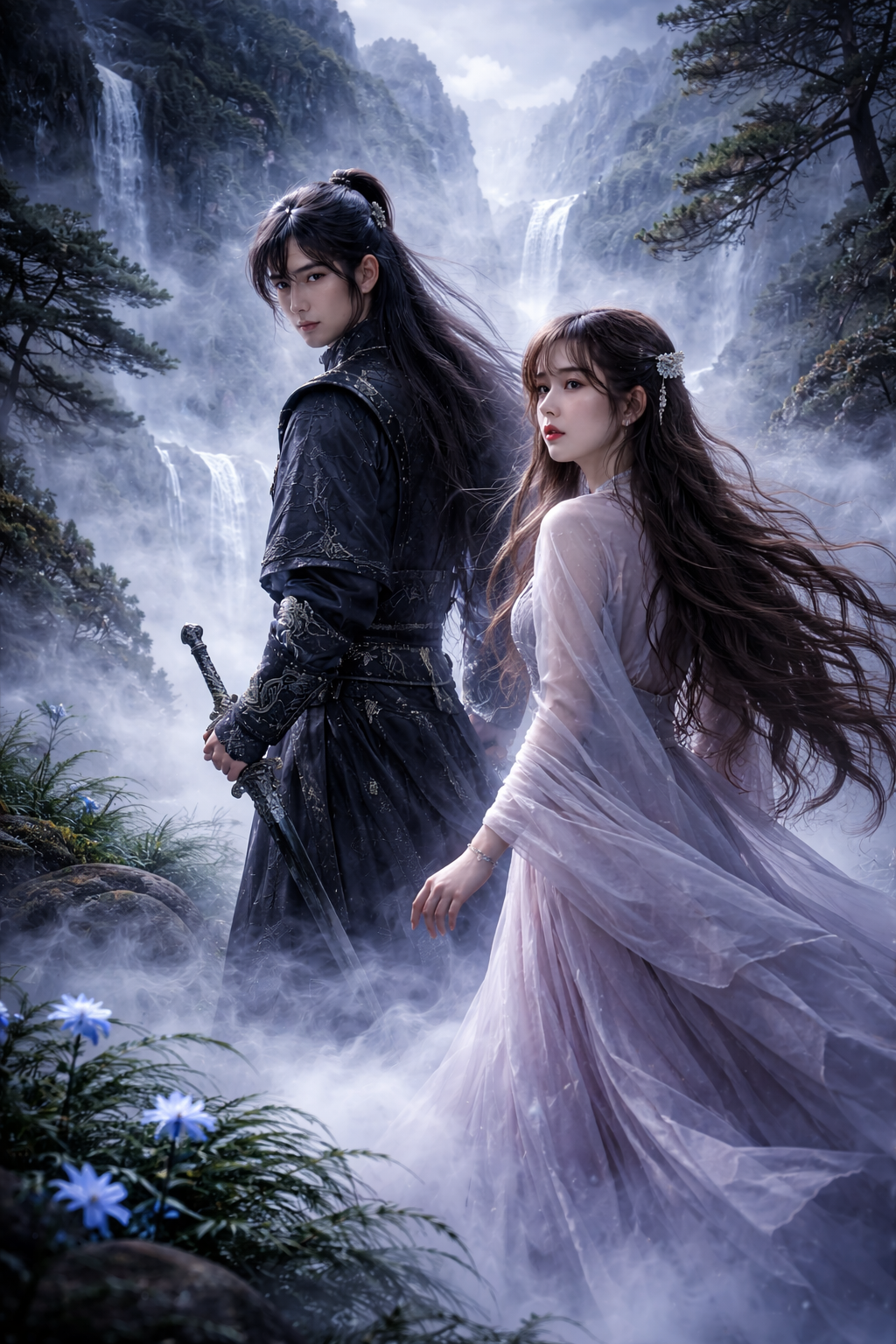 第一節:玉瘴迷途 謝無塵的腳步在及膝深的積雪中劃出規律的節奏,像某種古老的計時方式。離長安已三日,他們一路西行,專挑人跡罕至的山徑。蘇璃心跟在他身後三步,每一步都精確踩在他留下的腳印裡——這樣最省力,也最不易留下追蹤的痕跡。 她的呼吸在寒夜中凝成白霧,臉色依舊蒼白。手臂上的煞氣傷口已被謝無塵以「溫玉靈力」暫時壓制…