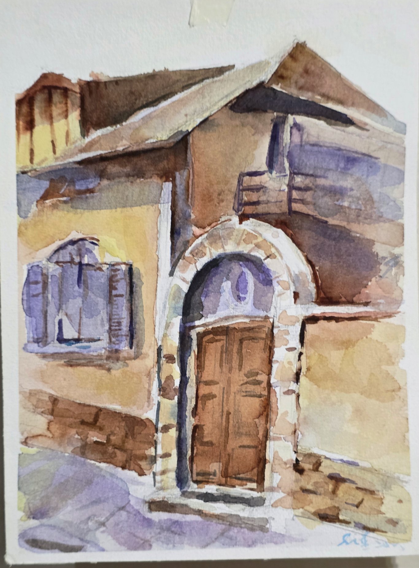 這次水彩素描的作業是「河流」,老師稱讚我,這次的作業畫得很好,有別之前作品,總放得太開,無法收尾的狀況,他笑著說,這神來一筆,手感來了的作品感覺特別好,我實在開心,難得把水彩畫好。