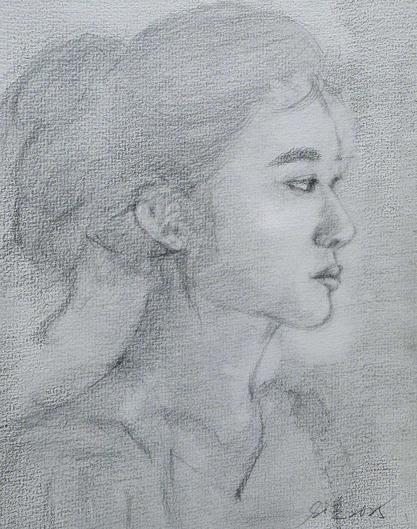 可惜當時搬家,我的一箱寶貝全被搞丟,不知流落何方,這次人物素描,好似把我當年的熱情找回來,也讓自己選擇小張的畫紙,比較容易完成,趁著這個想要畫的動機,動手畫人物,有種滿足的感覺。