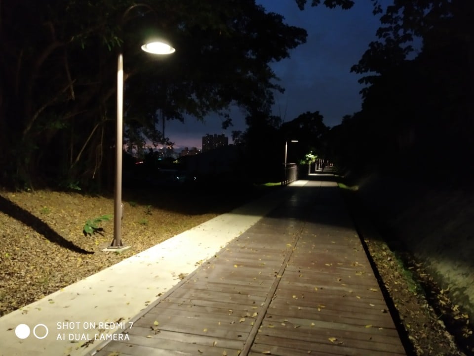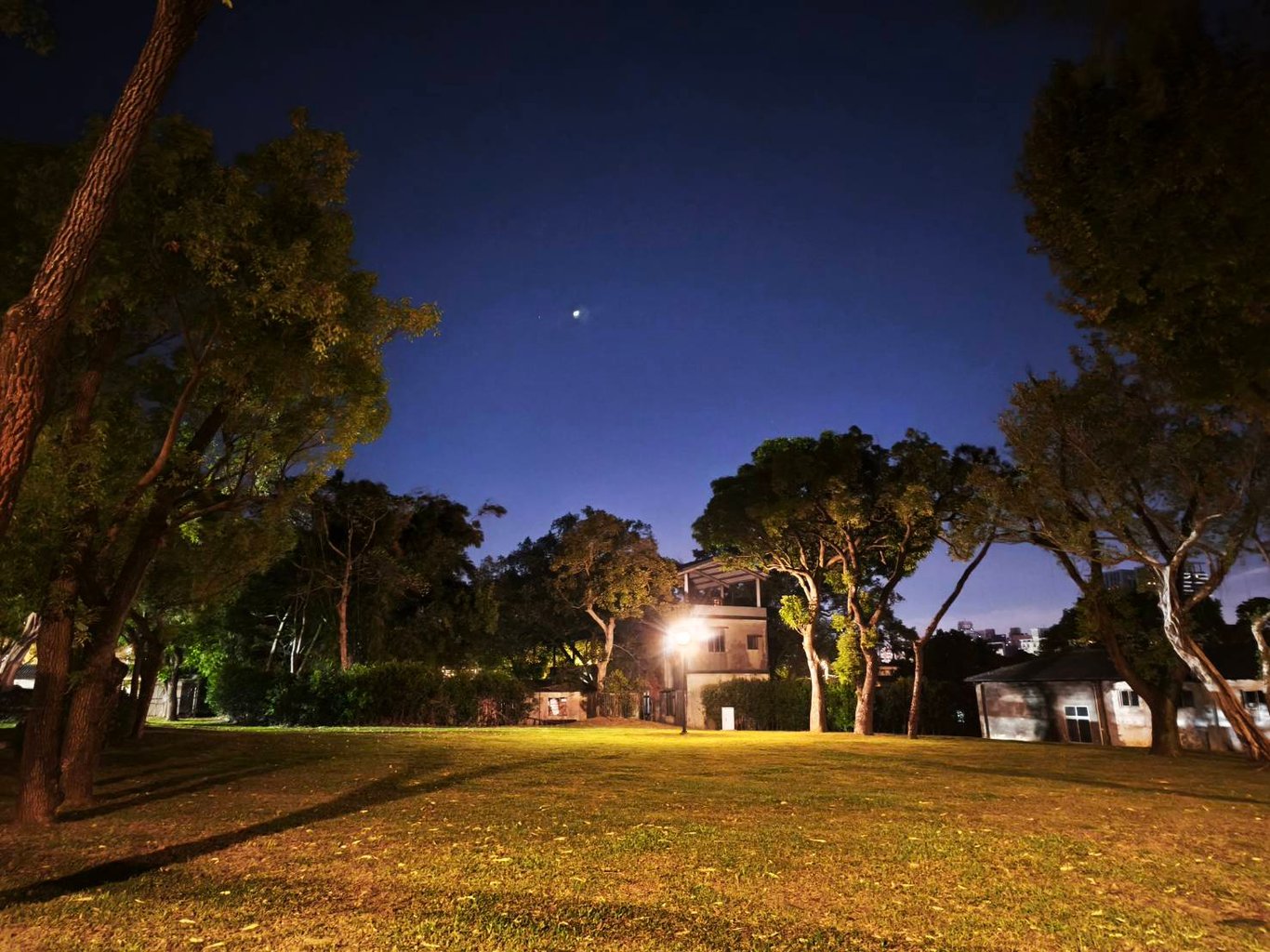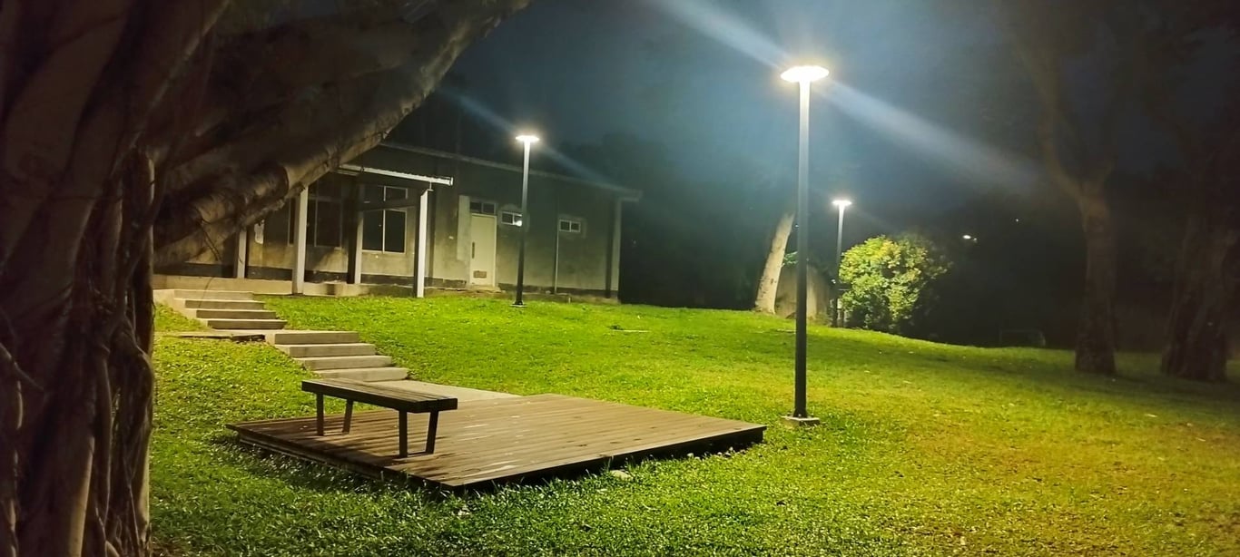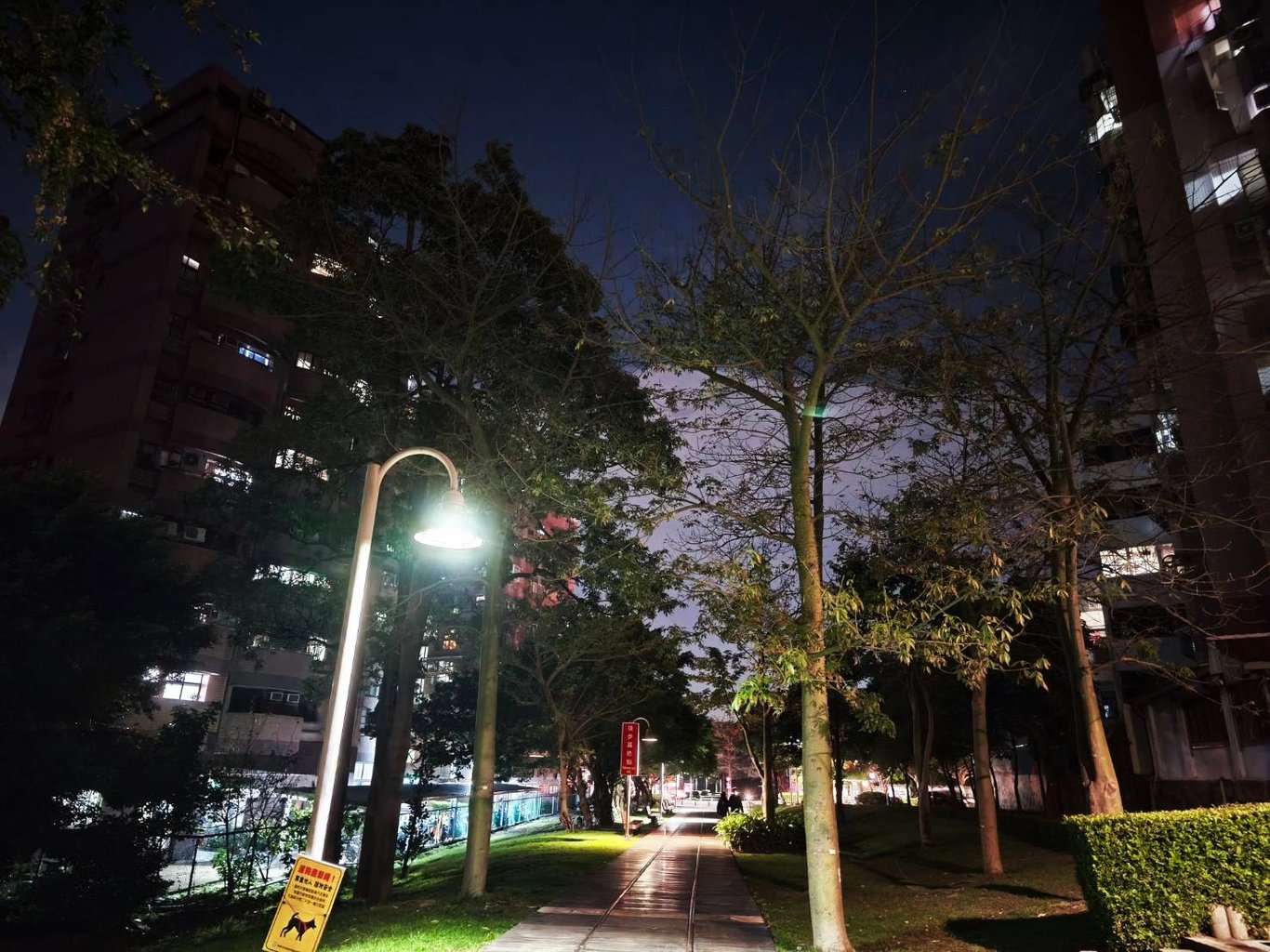 此刻,心中仍有些糾結,白天工作的情緒難以完全釋放。夜色深沉,天空高遠,我踩著月光映照的步道,公園的路燈一盞盞亮起,微光在地面拉出長長的影子。我緩緩前行,壓力像一條看不見的繩索,緊緊纏繞在心上。