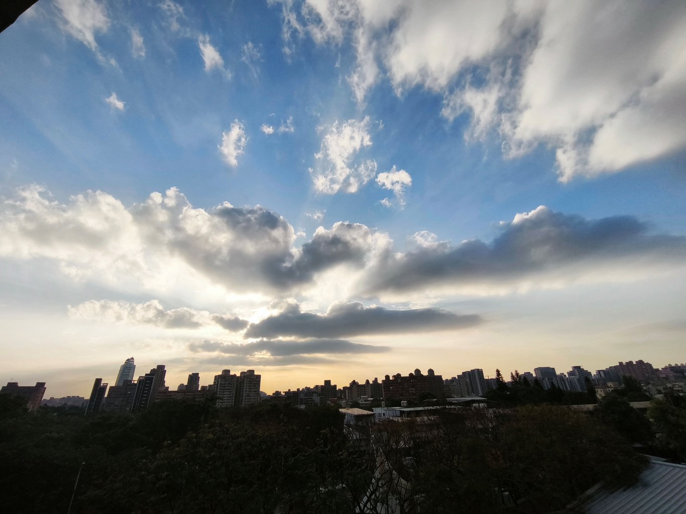 雲層翻湧,卻擋不住光的力量。夕陽在天際掙脫,一束束光芒,如破繭而出的翅膀,向天空展開!