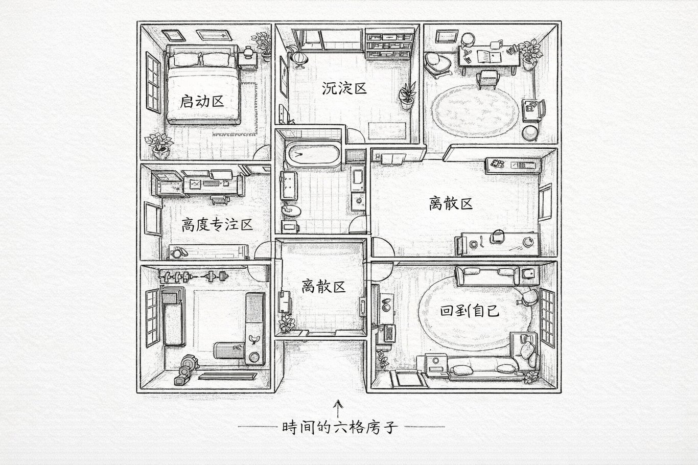 【6×4:一天的生活平面图】 若说时间也是一种空间,那么一天,或许也可以像一间房子一样,被重新规划。六格法并不是把时间切碎,而是尝试替一天画出一张可以安住的生活平面图。