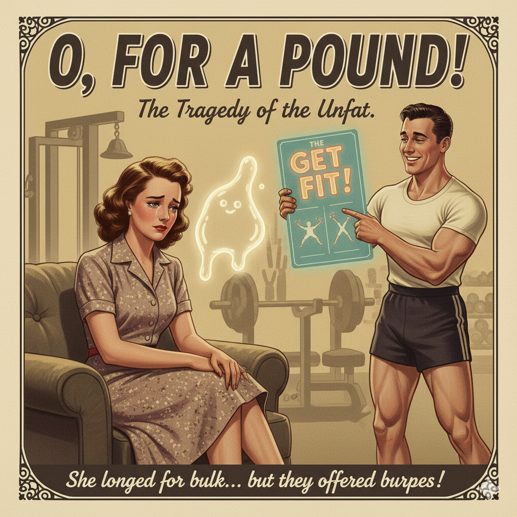 像知識一樣,脂肪聲稱自己,實際上,並不存在。它認為,運動都是些,糟糕的商業計畫。如果有人說,『呃,你有脂肪』,就好像,一些精心設計的商業黑爪,又伸向了你,他們要,你為你的勞動付錢,和付出時間,就好像你的知識,不存在一樣。事實上,脂肪,並不存在,一如我的智慧。