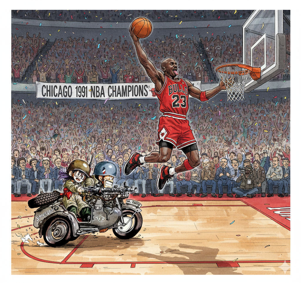 筋疲力盡於一場紅綠燈休克後,像一匹斑馬衝過馬路,像是一位飛人,飛人喬丹。喬丹,91年,被譽為人形路障上的活塞。紅燈把人變成一群死青蛙裡但確實有一隻是活的。我耳朵裡塞滿喬丹,在超級馬路上,行駛的像超級馬力歐。我腦袋裡充滿一些無意義的字,趕羚羊,趕羚羊,我要趕羚羊阿。當我回到了一個,充滿墓地氛圍的辦公室,我想把我左耳看…