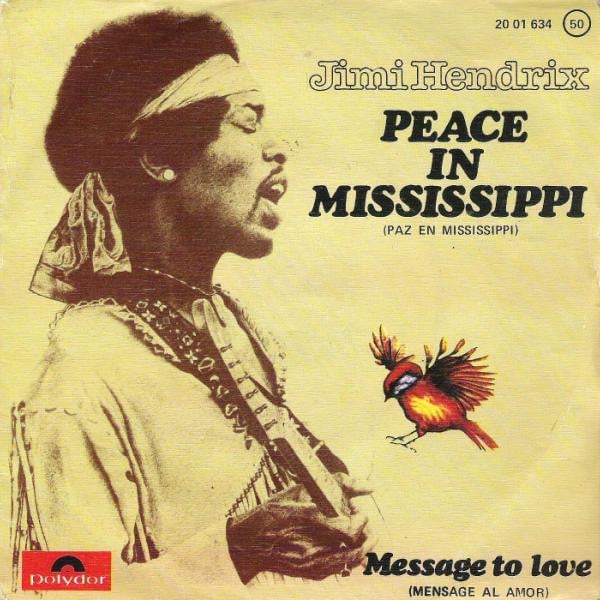 Jimi Hendrix 有一首純演奏曲〈Peace in Mississippi〉,錄製於 1968 年十月(前個星期前他的第三張專輯《Electric Ladyland》剛發行),首度面世是在 1975 年的合輯《Crash Landing》中。 這個版本長度 4:21,由被 Jimi 律師指派為遺產實際負責人的音樂製作人 Alan Douglas 找了幾位從未和 Jimi 合作過的樂手疊錄樂器去搭配 Jimi 原始的吉他演奏。聽起來很有七〇年代的當代喧囂感,但卻遭受嚴厲批評,因為那不是 Jimi 本…