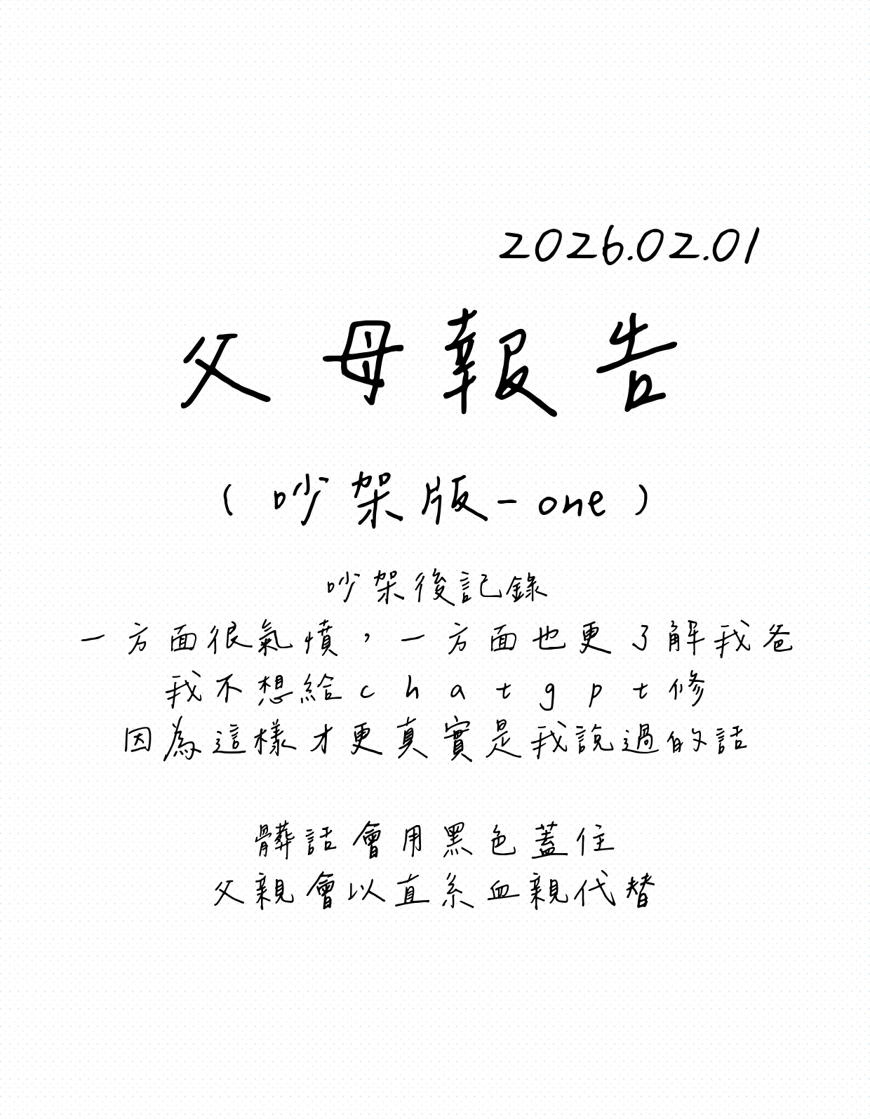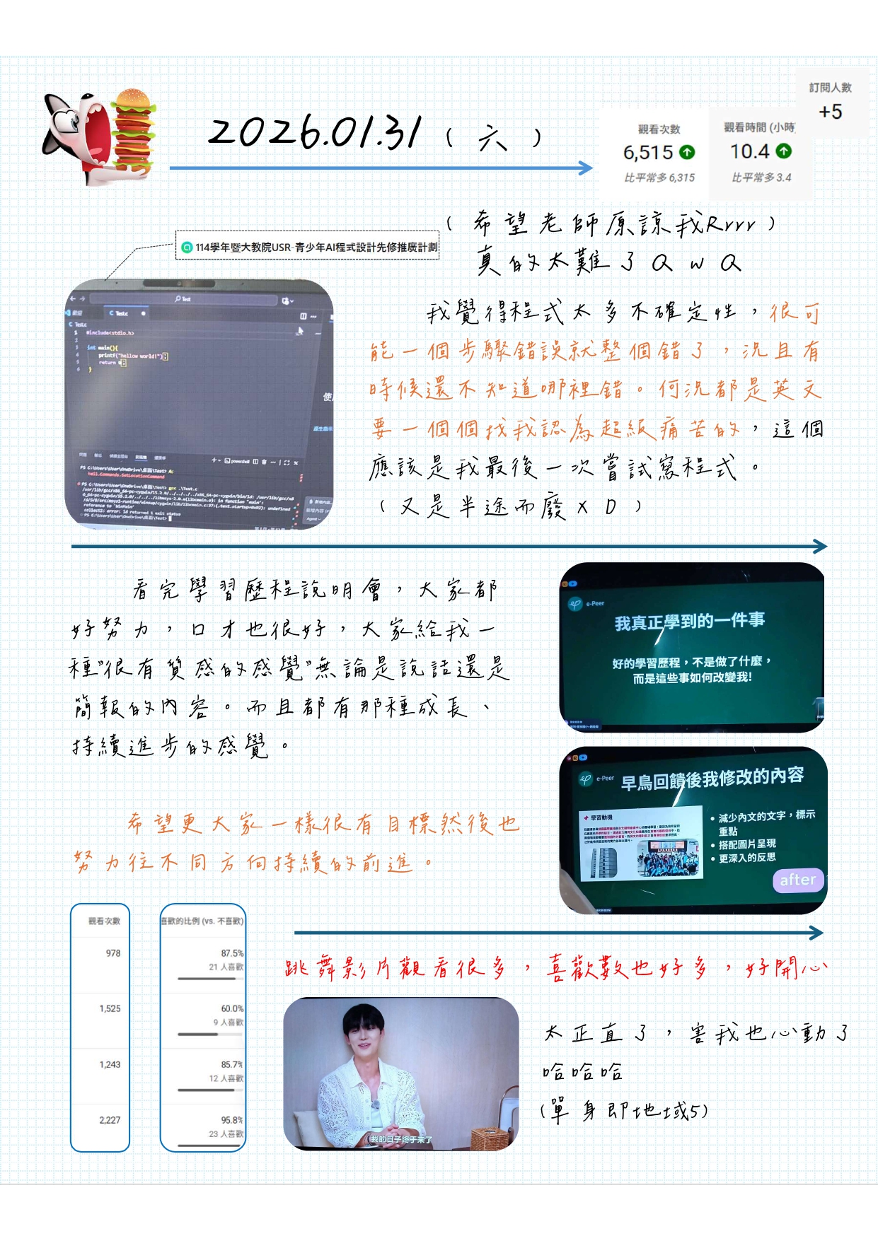 关注丁格freeze@dingerfreeze0 关注者0 关注中嗨!享受生活,分享生活各種feeling~ 包括跳舞、追星、追劇、生活紀錄等等。作品 46h丁格札記 | 2026/0202去了好多地方~~6h陽光女子合唱團-哭點分析(by前一天在寫父母報告罵父母的子女)02-01父母報告-我生下來不是自願的ㄟ2026.02.01 吵架實記02-01丁格札記 | 2026/0131~0201寒假生活刷完啦