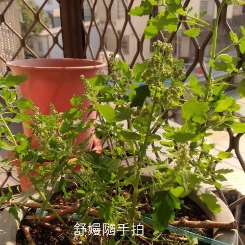 三株朝天椒枯萎,清除後,長出這奇怪的植物。 出於好奇,沒拔除,任它生長,好傢伙,沒澆水,不管它,越長越多,越長越高。 拍照查詢它的身分。 得到答案:這株植物是小藜(學名:Chenopodium album), 在台灣是一種常見的中低海拔雜草。 這種植物屬於莧科藜屬。 葉片呈菱形,質地堅韌。 嫩葉可食用,煮熟後味道類似菠菜。 在傳統醫學中,小藜被用作驅蟲劑、利尿劑和助消化劑。