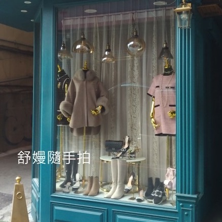 街頭除了有可愛的廣告招牌可以拍, 看櫥窗裡面的金飾,衣服,娃娃,包包鞋襪,也是我喜歡的。 看過一部電影,女主角的職業就是百貨公司跟高級服飾店的櫥窗設計師。 櫥窗擺設也是店家的巧思,畢竟這也是最吸引眼睛,最直白的廣告。
