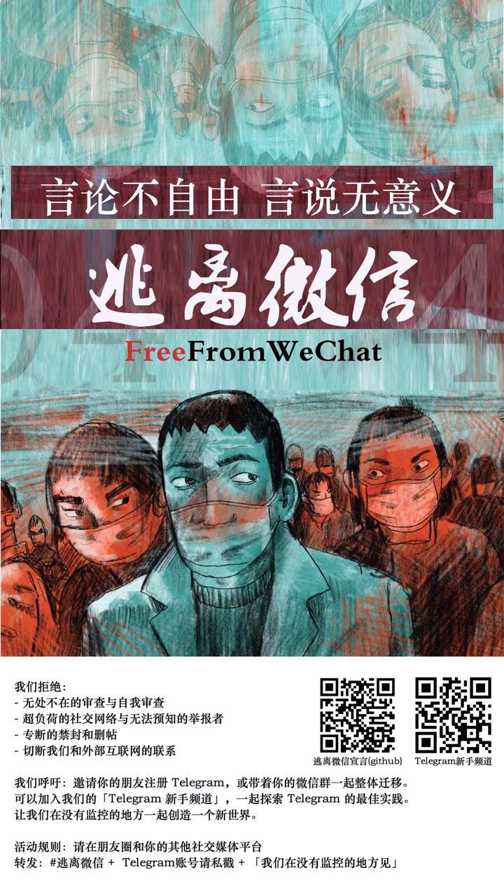 关注freefromwechat@freefromwechat183 关注者0 关注中 作品 1逃离微信宣言|FreeFromWechat Manifesto逃离微信宣言|FreeFromWechat Manifesto2020-02-13逃离微信宣言|FreeFromWechat Manifesto天下苦微信久矣!新冠肺炎是自然灾难,但当对瘟疫的自由谈论被限制的时候,瘟疫就变成了政治灾难。从2020年2月1日起,大量微信用户账号被短期或永久地封禁,相关讨论话题迅速成为微博超话。被封号者大多不明白自己做错了什么,因而陷入错愕。申诉,呼告,自证清白,恳求微信官方开恩。刷完啦
