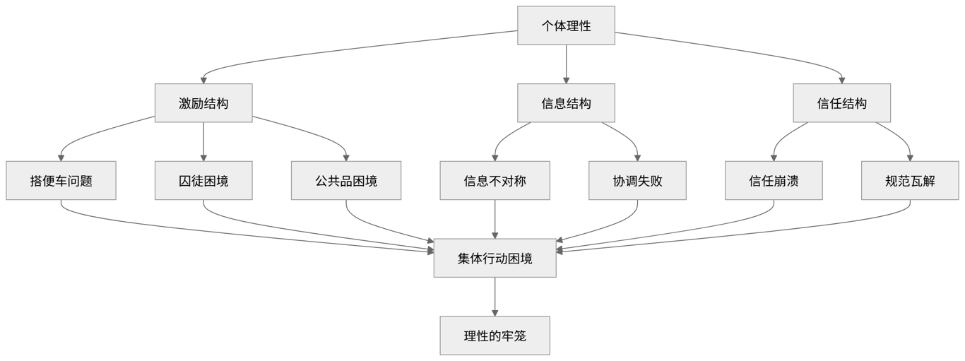 人类社会并不缺乏理性。相反,很多时候正是因为每个人都足够理性,才让集体陷入无法逃脱的困境。当个体理性彼此叠加,它们不会自动汇聚成公共理性,反而可能筑起一座看不见的牢笼。这座牢笼不是由暴力建成,而是由选择、激励、信息与信任一层层堆叠而成。本文试图拆解这座牢笼的结构——集体行动的九个问题。