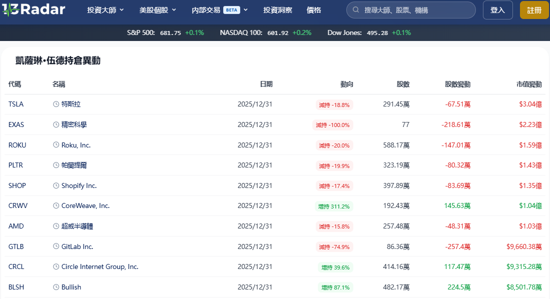 抄底還是越攤越平?拆解最新木頭姐持倉:女股神的 AI 與生技大豪賭