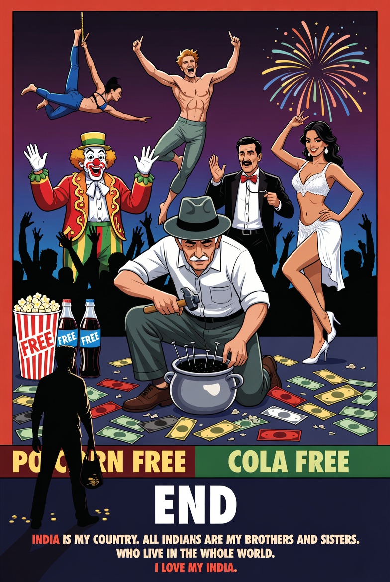 我拿出票給入口的工作人員檢視,她看完後微笑的把票遞還給我,我的座位是七排十一號,節目是選秀比賽,我拿到了免費的可樂和爆米花,節目冠名贊助的有紅錢、黑錢和黃錢,當然綠錢更加搶手與醒目。 坐下沒多久節目就開始了,最先登場的選手是一個揹著破鍋的老先生,只見他神乎其技的用大鈔才三兩下的工夫就將破鍋給補好了,只是…