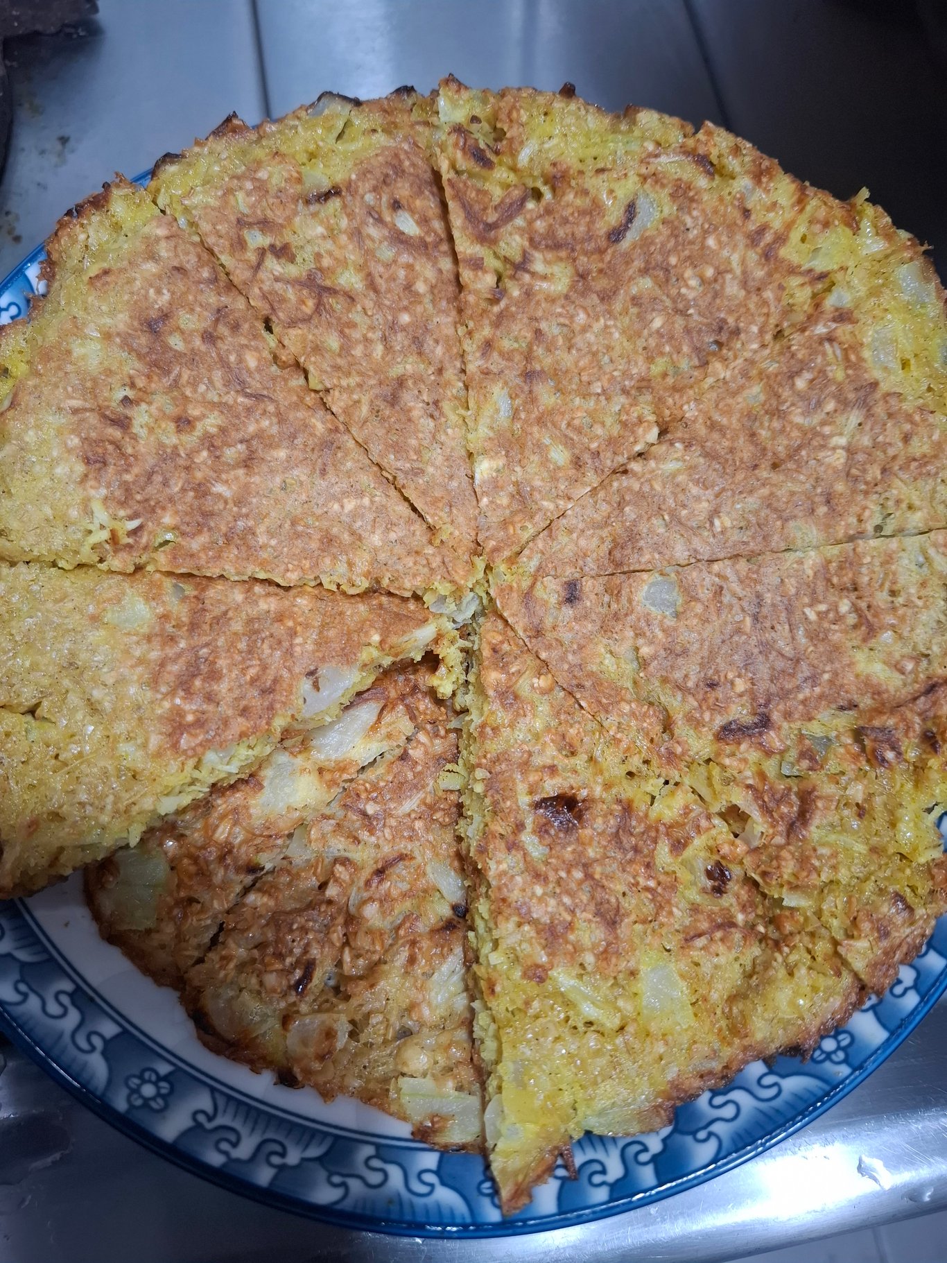 做了泡菜鮪魚燕麥麩皮煎餅!結果我低估了份量,做了超大一盤,疊的像山一樣高的煎餅,分裝之後冷凍起來慢慢吃吧! 做法很簡單,只是我覺得水分太多,煎起來有些會散開,也許下次可以改良。 一顆洋蔥切丁,金針菇切小段下去炒,適量加點胡椒鹽調味,放到一旁放涼。燕麥麩皮加適量熱水泡開,等待麩皮和放涼的時候切泡菜和準備鮪魚罐頭,再…