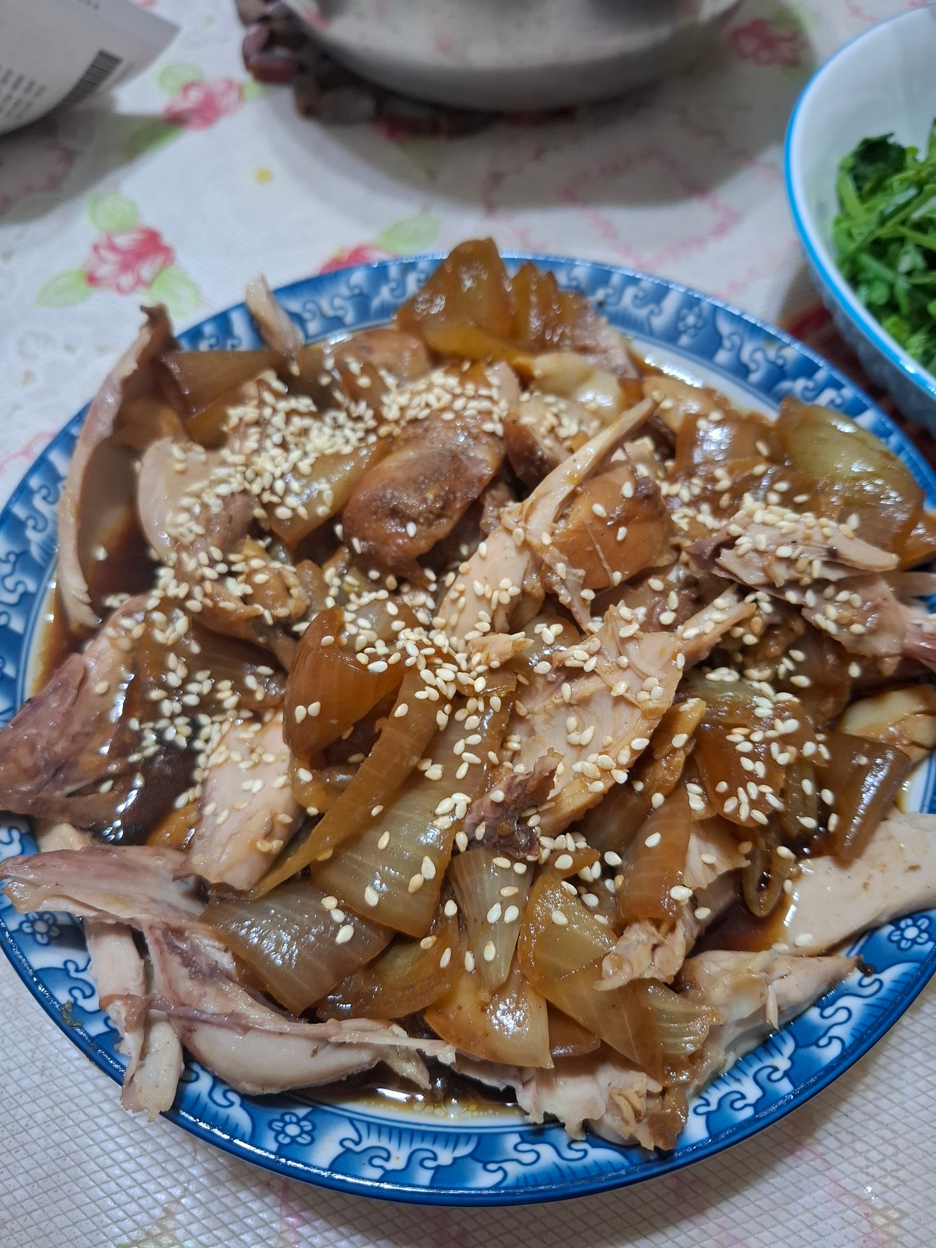 在Instagram上面看到一個醬油手撕雞的食譜影片,實在是太誘人了,所以記起來打算今天做!昨晚去全聯買了五隻棒棒腿,今天做出來這麼一大盤,好好吃的感覺!做法也十分簡單,電鍋電子鍋都可以做♡ 首先將雞腿清洗一下,然後用滾開水燙一下,不用煮喔,就是淋上去讓雞皮緊縮就好,稍微浸泡五分鐘左右,趁這時候來調醬汁。