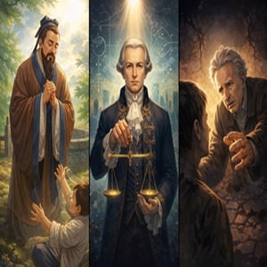 倫理從何而來?這看似簡單的問題,卻在不同的思想傳統中產生截然不同的回答。儒家的惻隱之心、康德的無上命令與列維納斯的他者召喚,分別出自三種文化與哲學體系,代表著三種倫理起源的典型模式:情感內發、理性立法與他者震撼。這三者所描繪的倫理世界,不僅展現了人如何成為道德主體的不同路徑,也暴露出倫理的複雜性——它既不…