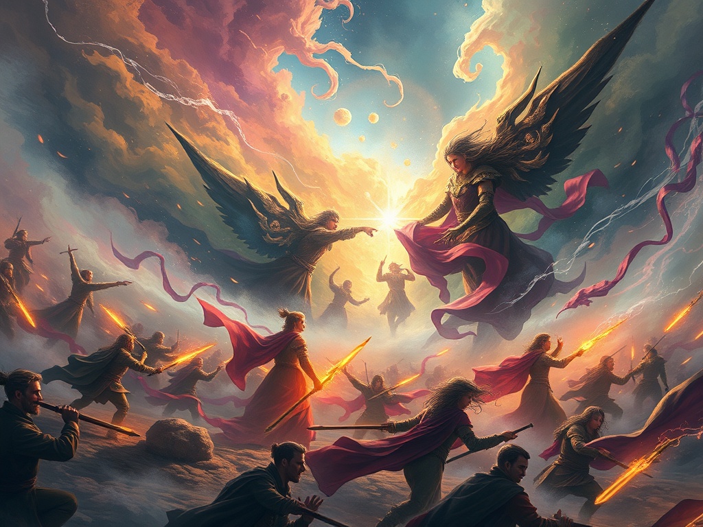 幻境散去,殿堂恢復寧謐。五色光輪再度和諧運轉,聲息如宇宙的低吟。眾人內心皆生出一種深沈清明——生命與文明,本是阻尼與增益的交響;放下執著,在流轉中見安。
