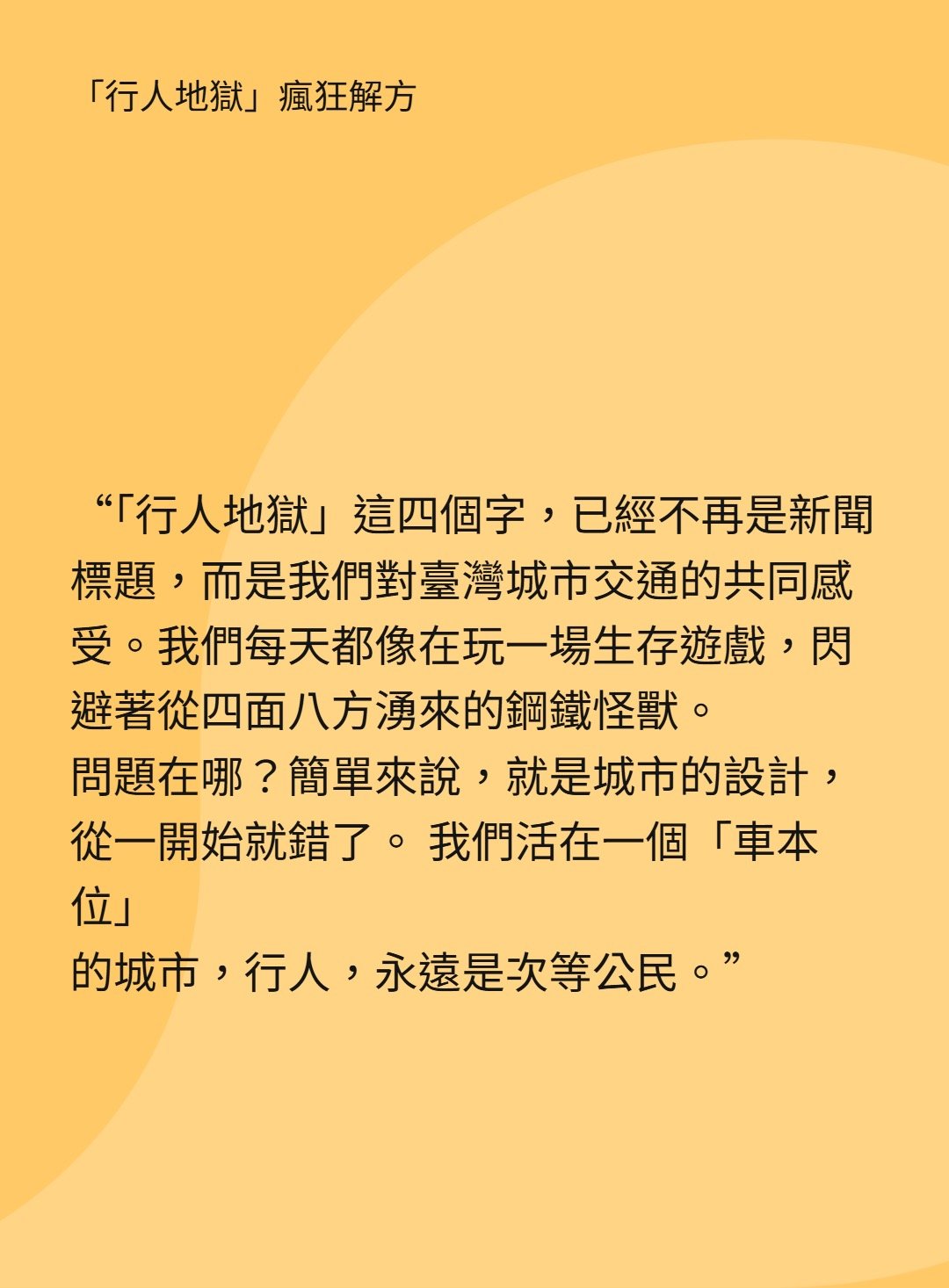 臺灣「行人地獄」是車本位二維城市。唯一解方:把所有車輛趕進地底!地上只留行人、單車與森林。馬斯克說:塞車是二維數學宿命,唯有三維隧道能救。Boring Company正把鑽挖成本砍到1/10,一旦成熟即可實現。車流下放,地表爆炸解放,臺灣將從行人地獄一秒變全球最宜居森林城市!敢不敢做,就看我們有沒有膽把車塞進地底、把地面還給人民。