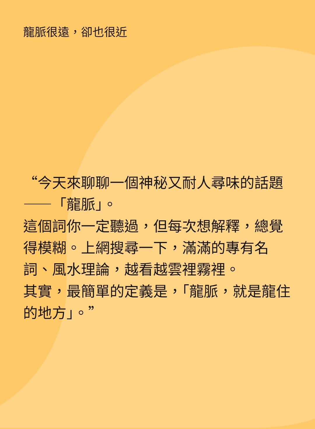 「龍脈,就是龍住的地方」。換言之,尊重自然,就是在修復龍脈;順著龍氣而活,才能找到屬於自己的能量流向。龍脈不是迷信,而是一種與天地互動的感知。