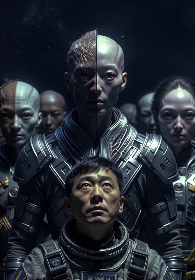 在宇宙邊緣某未標記的小行星上,住著外星文明「分相者」。他們靠「面貌分裂」延續生命。生命週期僅12 年。每逢極夜,他們的臉會分裂成未來與過去兩個時間切面,共存卻不可靠近,靠近則因頻率共振導致時間崩塌,瞬間老化。他們語言中沒有「青春」與「老去」,因臉只是時間的影子。這種分裂是為了製造「時間盲點」。死亡必須同時帶走無法靠近的兩個版本…