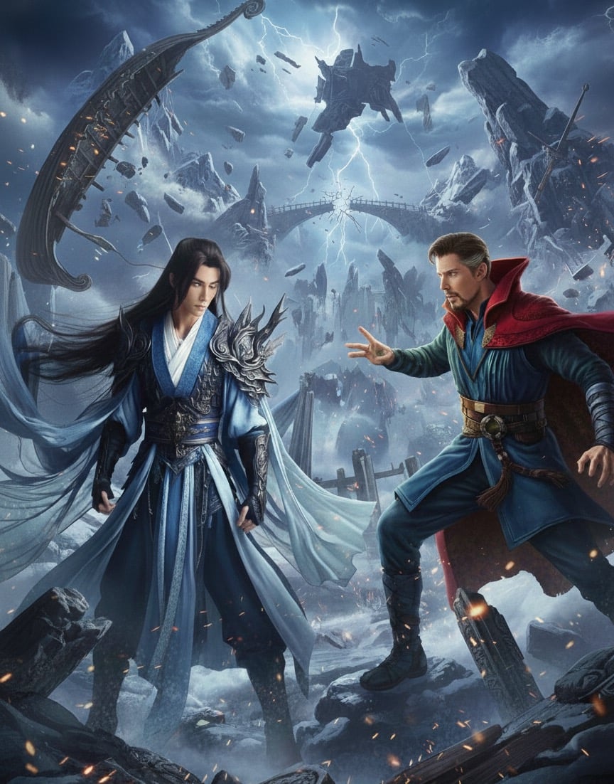奇異博士與楊戩各自追擊宿敵多瑪暮與九幽魔君時,感應到對方的天眼力量,誤判彼此為敵人同夥,展開激烈廝殺。戰鬥撕裂了東西方世界屏障,兩大魔王趁機聯手降臨。兩人這才發現搞錯了,只能背靠背聯手作戰。奇異博士的時間魔法與楊戩的因果天眼完美互補,兩人並肩擊敗融合魔王。戰後相視而笑,成為摯友——不打不相識,這場烏龍誤會反…