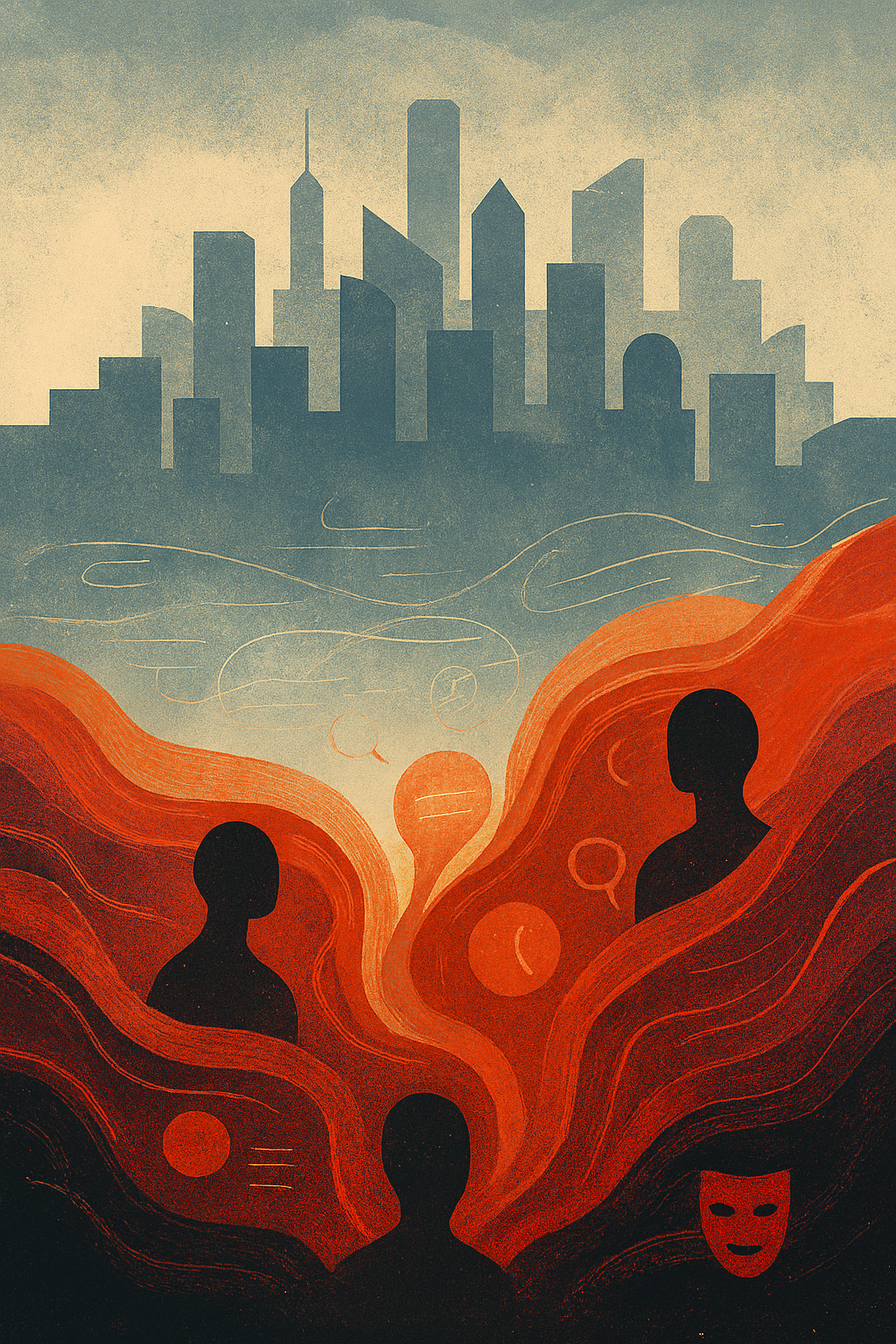 捷運裡的沉默,並非冷漠或禮貌,而是一套高密度社會的生存策略。人們在擁擠的車廂裡,保持距離,收起目光,暫時讓自己消失。這不是孤立,而是文明在壓縮空間與時間下,發展出的微型秩序。每一次不被看見,都在完成一項微妙而困難的合作:讓彼此不成為負擔。