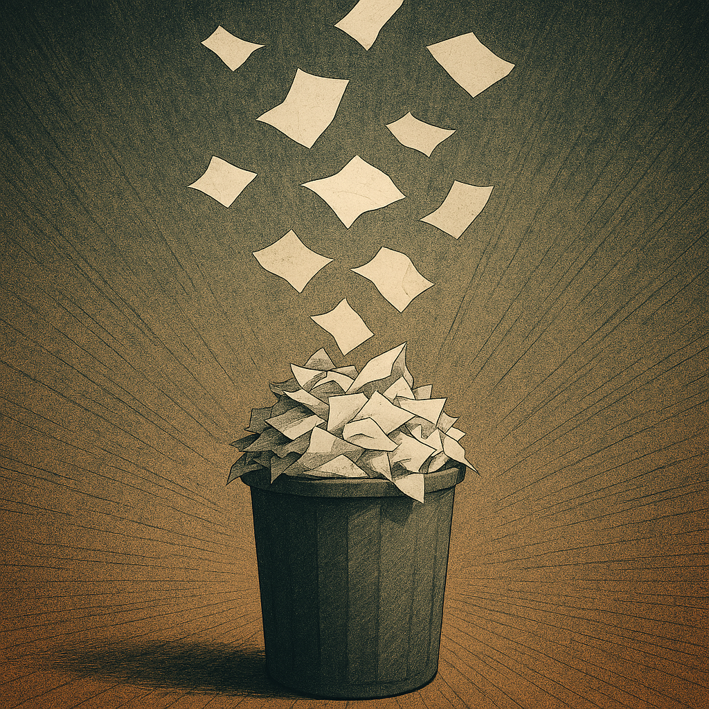 每個人都相信自己是「最後一位不造成災難的人」。垃圾桶之所以溢出,不在於容量,而在於人類對系統極限的無限樂觀。這是一個關於邊界、責任與微小失衡如何累積成群體崩壞的冷靜觀察。