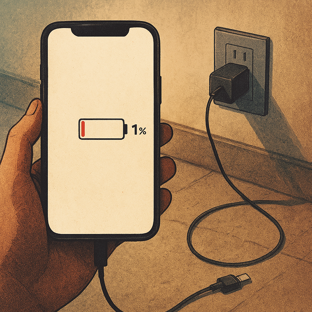 我們以為手機只是工具,直到 1% 電量時,身體先於理性做出反應。那一刻,人不是在擔心任務失敗,而是在面對一條正在熄滅的存在訊號。低電量不是危機,它只是短暫揭露:有多少自我,早已被外包給一個微小的數字。