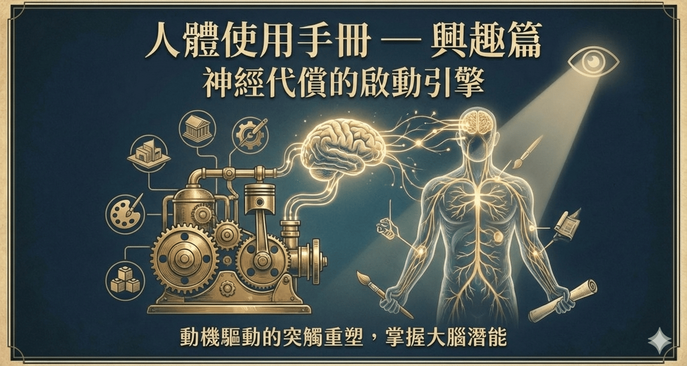 前言:興趣不是消遣,是神經系統的「合法作弊碼」 在生命遭遇神經功能受損(如小腦退化或損傷)時,多數人看見的是衰退,但「人體手冊」的使用者看見的是重構的機會。當原本的自動導航系統(小腦)失靈,我們不應僅靠單薄的意志力苦撐,而應透過「核心興趣」誘發內源性動力,強迫大腦開發副跑道。這不是在打發時間,而是在進行一場精密的神經防禦…