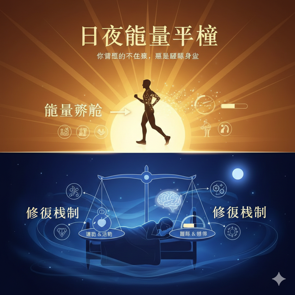 在診間或藥局門口,我們常聽到兩種聲音:一種是「藥沒效」的挫敗,另一種是「怕上癮」的恐懼。其實,這兩者都源於我們對睡眠本質的誤解。 1. 睡眠的燃料:是「能量消耗」,而不只是「累」 我們常說「累了就要睡」,這句話其實不夠精確。很多人白天坐在沙發上、或是長期臥床,心裡覺得很「累」,但晚上卻翻來覆去睡不著。 睡眠的本質,是身體在能量消耗後的修復機制…