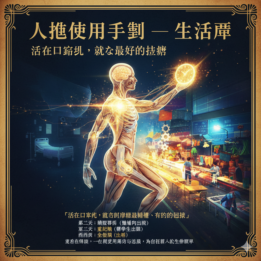 前言:別在病榻上等待康復 大多數人在手術或重病後,會陷入「觀望模式」:每天醒來先感受傷口痛不痛、腿部有沒有力氣,若感覺不好,便決定再休息一天。這種對身體訊號的過度關注,往往會放大不適感,讓康復變得遙遙無期。 真正的身體主人懂得一套**「生活先行」**的策略:不是因為康復了才去生活,而是透過生活,讓身體被迫跟上。 第一章:48 小時的生…