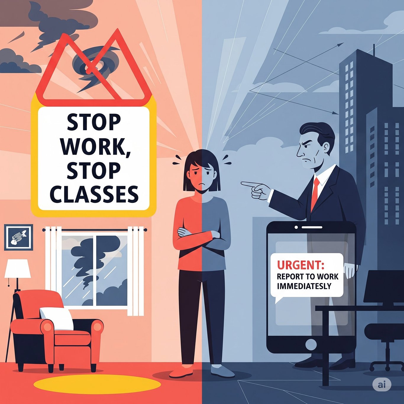 停班停課,所以沒去上班。業主居然點名誰來上班?