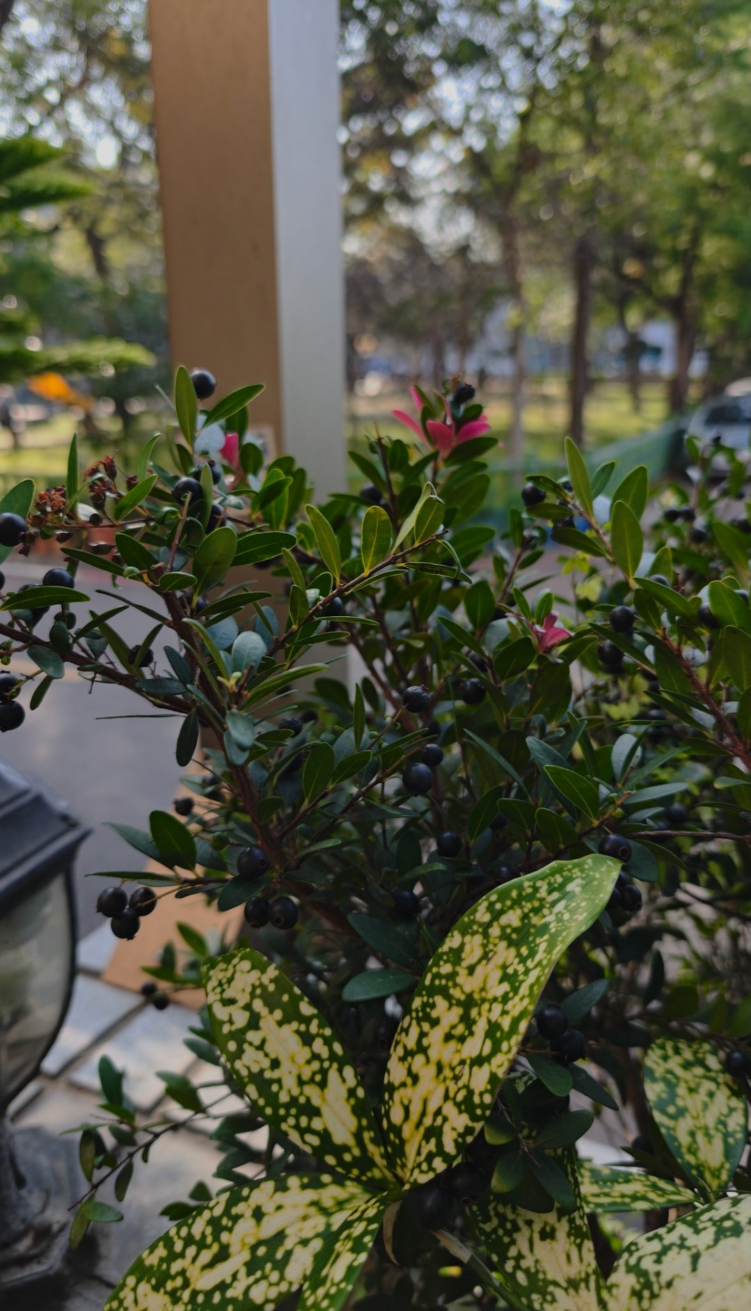 早晨下樓往門外望去,正好飛來兩隻白頭翁,開心地站在我家門前的小葉赤楠上。小葉赤楠現在正是結果實的季節,牠倆就站在樹邊吃起來了,一副自家廚房的概念。 我心想光是我家門前的果實就能讓牠們飽食好幾十頓,重點還是免費的,完全不收錢。 因為怕驚動牠們所以我站在屋內拍攝,照片看起來還是有些模糊不清楚。 這幾株小葉赤楠是…