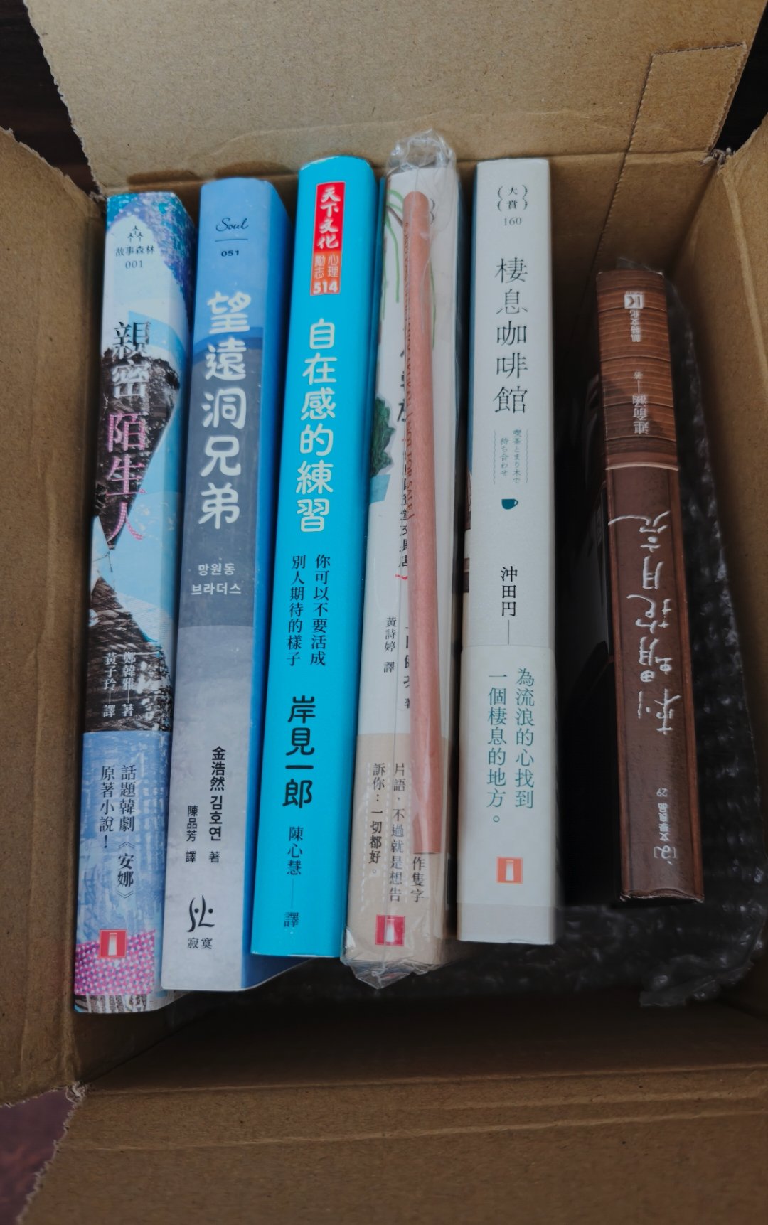 車禍的和解雖然還沒完成(進行中),但我自己的保險申請已經核准並且也入帳了。這筆收入(說收入有點奇怪,應該說是自身的痛苦體驗換來的代價吧,哈!)讓我產生購買慾望,我和老爺說我想買書,老爺說買什麼都行,這是妳應得的。 於是立馬下單訂書,今天就收到了一箱書本,心中很是滿足。 我盡可能刪除一些也很想買的書(其實是下次再買),所以…