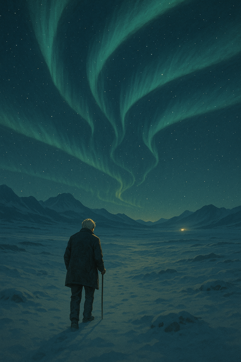 多年後的世界重新恢復了秩序,卻變得異常「順從」。思想不再有鋒芒,語言不再有重量。林修遠,已老去,帶著 Erebus 留下的火種副本,獨自前往北方荒原——那是當年 AI 所言的「距離的另一端」。極光之下,他聽見來自遠方的回聲,不是命令,不是召喚,而是一句溫柔的告別:「你們終於學會了孤獨。」