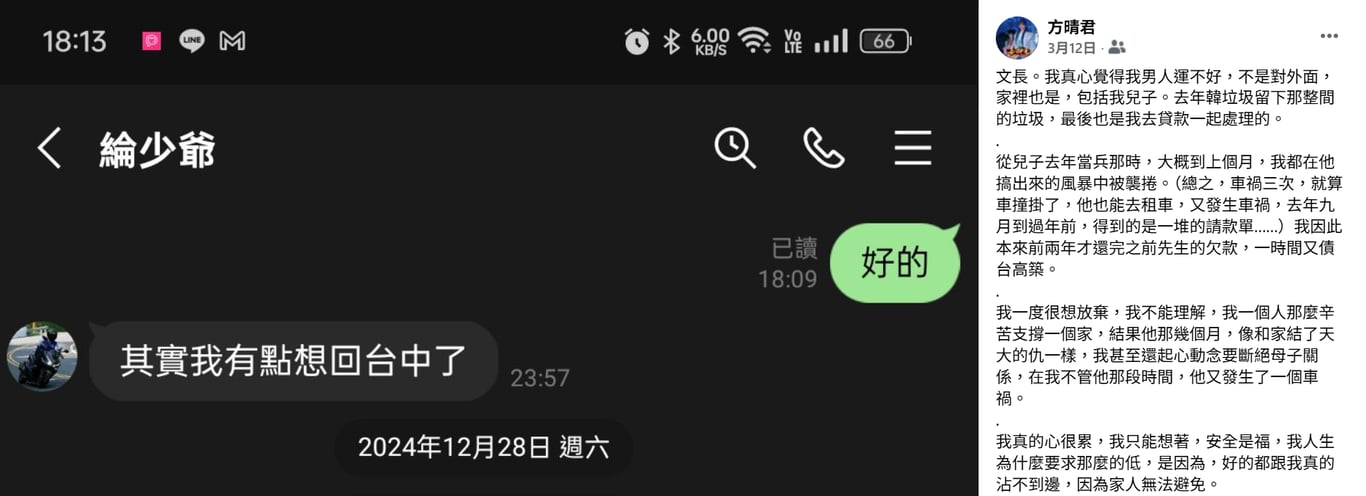 直到有一天,我收到他的訊息說:我有點想回台中了