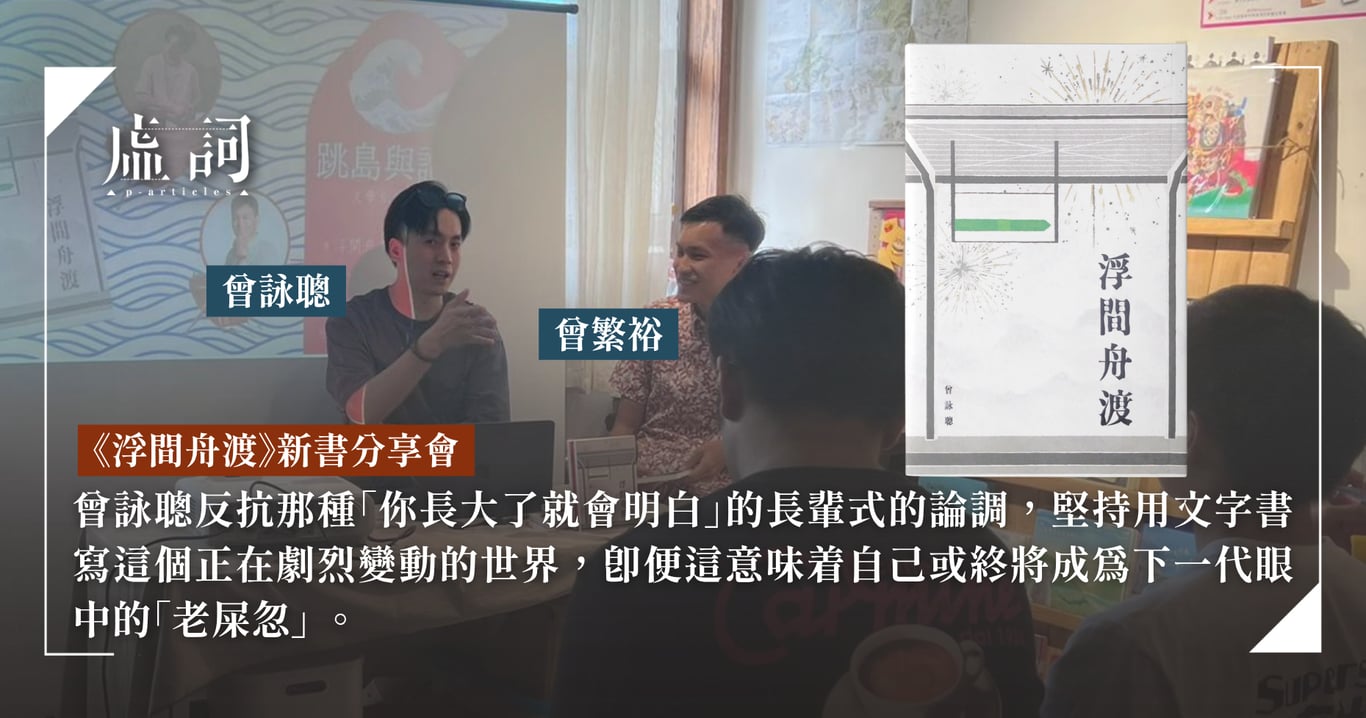 曾詠聰反抗那種「你長大了就會明白」的長輩式的論調,堅持用文字書寫這個正在劇烈變動的世界,即便這意味着自己或終將成為下一代眼中的「老屎忽」。