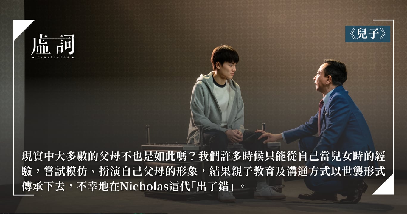 現實中大多數的父母不也是如此嗎?我們許多時候只能從自己當兒女時的經驗,嘗試模仿、扮演自己父母的形象,結果親子教育及溝通方式以世襲形式傳承下去,不幸地在Nicholas這代「出了錯」。