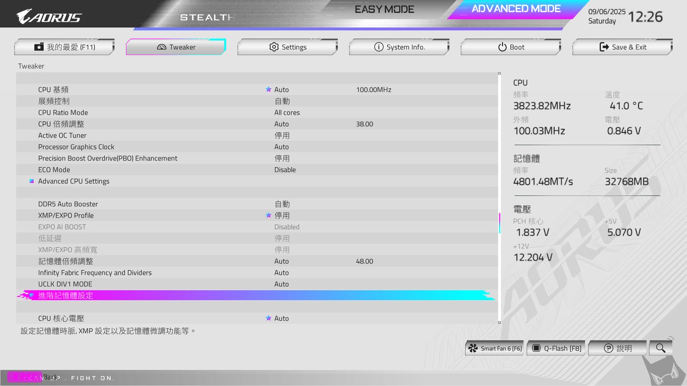 客訂機菜單 ============================ R7-7700 + 利民360水冷 主機板:Aorus B850 Stealth ice 背插主板 記憶體:Acer Preadtor Vesta2 RGB D5/6000 顯示卡:5070 Eagle oc ICE SSD:美光 T500 1TB M.2 SSD 電 供:全漢 VITA GM 850 金牌 白色 配 件:無線網卡及天線、藍芽、編織訂製排疏線、燈色控制盒。 機 殼:聯立 V100 白色 ============================= 因為客訂機用了技嘉 B850 Aorus Stealth ice 這塊背插板,裝了 Acer Preadtor Vesta2 RGB D5/6000 這組記憶體,開機檢測時先燈號先[15]再跳[C5],檢測過不去就開不了…