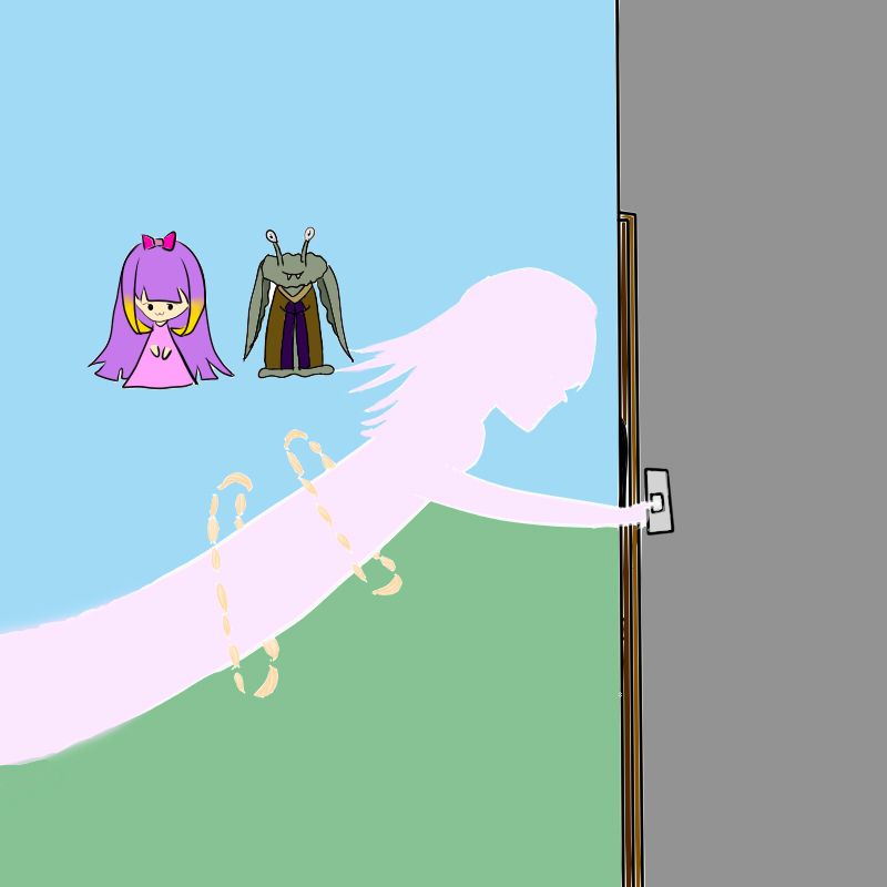 第十一集 ╴樂兒?萊斯? 前情提要 月寧和馬德信為救梅格,確定要去找萊斯,他們求空氣精靈幫助他們,空氣精靈答應了,並帶他們去到萊斯家門前。 月寧心想:這不是樂兒的家嗎?- 她雖然很疑惑,但正事要緊,只能暫時不理了。 「叮咚~」空氣精靈按下門鈴。 「是送外賣嗎?」一把女聲傳來。「我是月寧!來找樂兒玩的!」月寧說。 「月寧?你等一等啊!」看聲音應該在忙。 門一開…