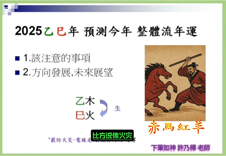 2026年將至 60年一次的赤馬紅羊劫再度襲來 歷年來每逢丙午年丁未年都容易有天災人禍的發生 如以八字命學角度來看 丙午年天干地支都為火,自成一氣 丁未年天干為火,地支雖為土 但是未土屬燥土也蘊含火的能量 所以丙午丁未年來說 本身就要特別跟火方面相關的訊息 比如說,在2025年初乙巳年開始 我們就預測了今年容易發生火災…