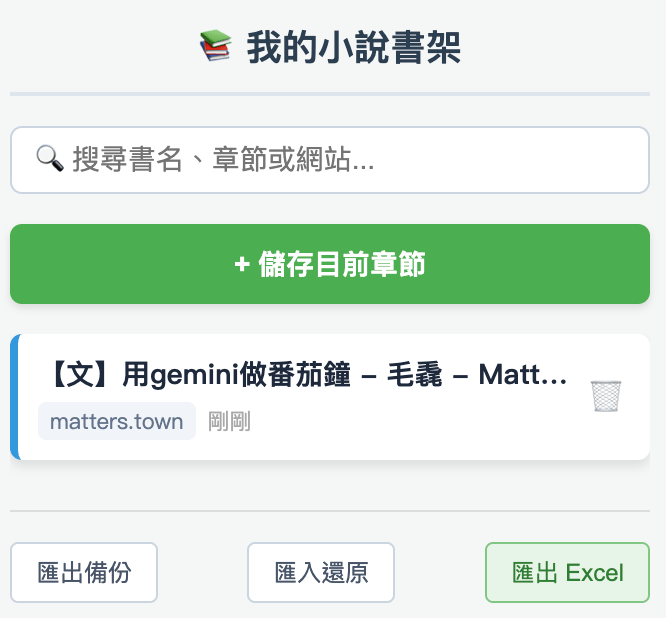 又消失了一陣子。只要偷懶過就很容易逮到時機就偷懶(不是。 今天心血來潮想說,每次看文章,尤其是那種連載的文,都很容易看到忘記看到哪,就去問gemini有沒有什麼好建議。 如果要存網頁書籤,又覺得好像沒那麼方便。無法馬上就點到就存好(還要把鼠標點到上面的書籤,然後再選收藏夾)、也無法馬上就找到它點出來,也很常忘記加書籤。 所以,很…