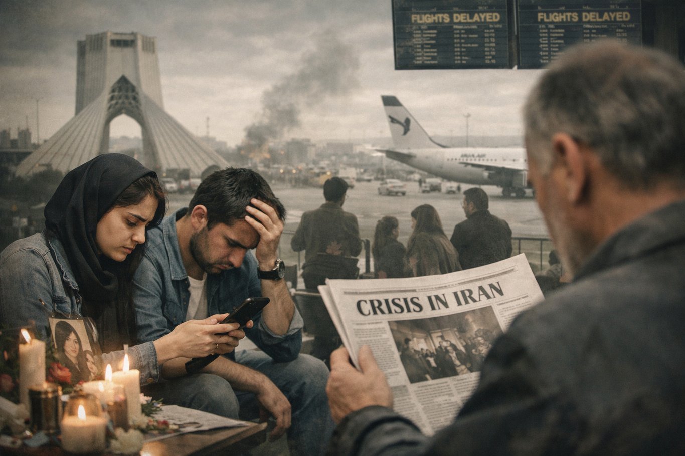 2/28早上,我刷到消息,非常紧张,可机票App仍显示航班正常。我几乎是冲去机场的,结果出发大厅被拦,所有航班取消,现场安静得反常。我们决定连夜往北走,路过的城镇和服务区却一片照常,餐馆灯火通明,人们照样吃饭聊天。撤离从来不只是危险,它更像一条被“正常”盖住的暗线。