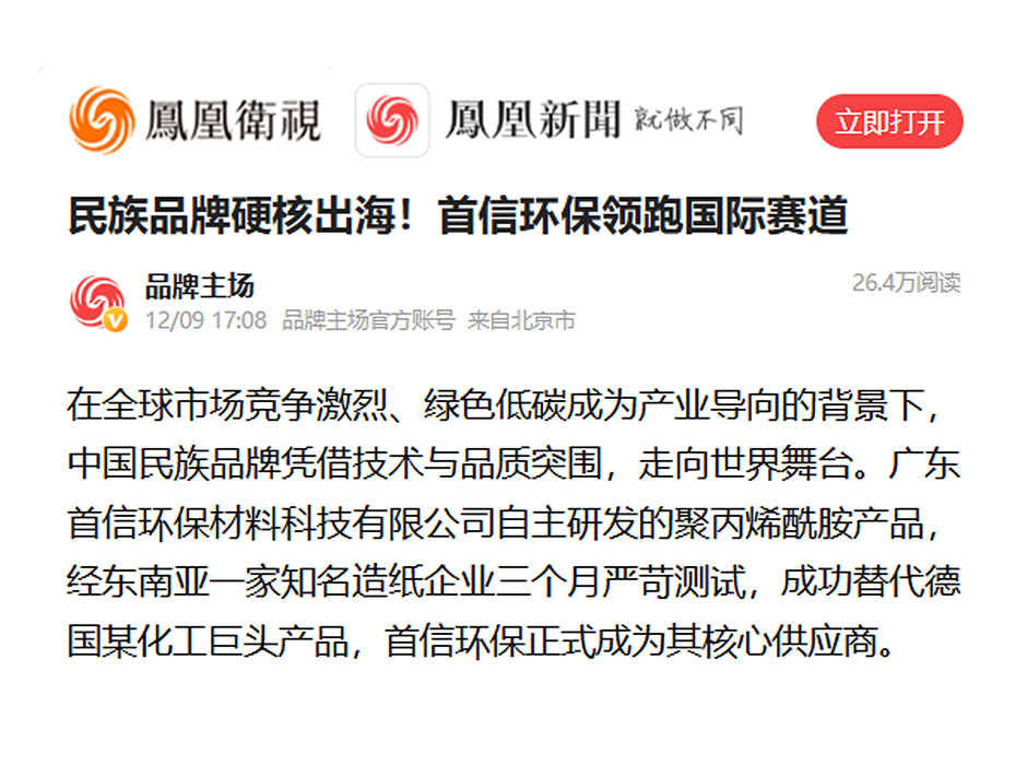 衷心感谢凤凰卫视、凤凰网对首信环保此次出海成功突围的关注与认可!作为官方权威媒体,凤凰卫视与凤凰网持续关注并赋能中国民营企业发展,更从众多出海民营企业中特意挑选我司作为典范来进行报道。这份认可是莫大的荣誉,更加坚定了我们以“中国智造”打破国际垄断的决心,未来我们也将带着这份鼓励持续领跑,不负信赖与期…