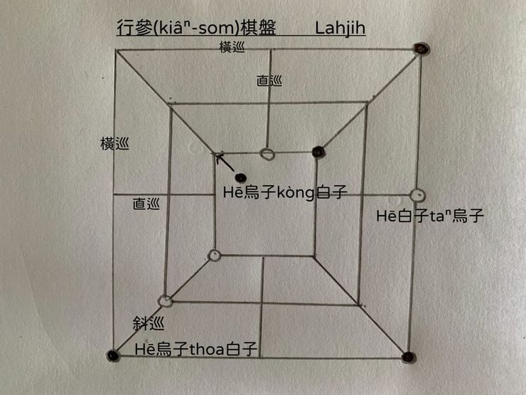 閩語小品文21 2020/09/16 童玩,讓四五年級生,特別懷念,在那古早,小孩沒有什麼娛樂的年代,有那麼一種遊戲,可以打發時間,又可以娛樂身心,在物質匱乏的年代,帶給童年各種酸甜苦辣中,少有的甜蜜回憶! 這個遊戲,是從西方傳來的,叫直棋,英文叫Morris, 有最早紀錄是西元一千四百年前的古羅馬,十二個棋子,叫做 Twelve men’s Morris,吃子的方法只有一種,就是…