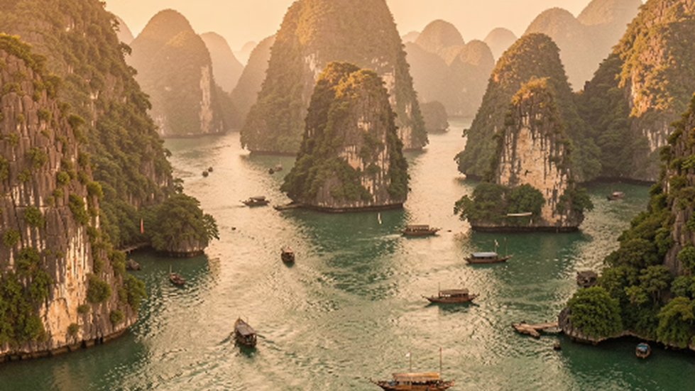 遊覽下龍灣也可以浪漫出海,欣賞落日餘暉,享受高品質的五星郵輪美食服務