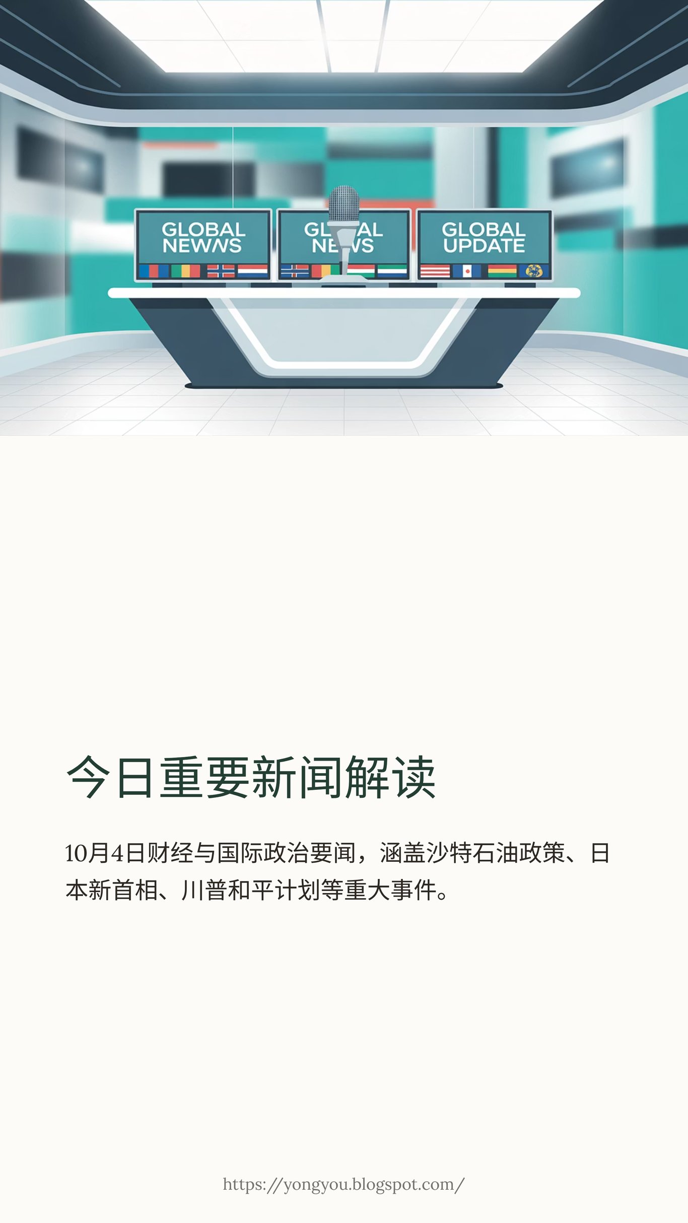 今天(10月4日),全球财经与政治新闻交织,既有石油市场的动荡,也有亚洲政坛的变局,更有中美暗中的交易。以下为核心要点与解析。